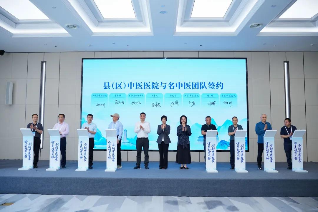 传承需搭建新载体,发展要有新抓手。名中医传承工作室集中签约是本次活动的核心环节,按照市级引领、县域联动、科研协同的三步走模式统筹推进。市级层面,宜宾市中医医院携手国医大师、国家岐黄学者等顶尖中医团队签约合作,聚力提升宜宾市中医医院内涵提质、能力升级;县域层面,珙县、长宁县、高县、兴文县中医医院分别与名中医团队结对共建传承工作室,精准补齐基层中医药服务短板;科研创新层面,宜宾市中医药科学研究所与宜宾西南交通大学研究院及优质科研团队,聚焦代谢性疾病、结节病、心衰、慢阻肺、颈肩腰腿痛等高发常见病,围绕中药院内制剂研发、大健康产品开发、道地药材标准化培育等重点课题开展联合攻关,以医研深度融合助推中医药产业转型升级。